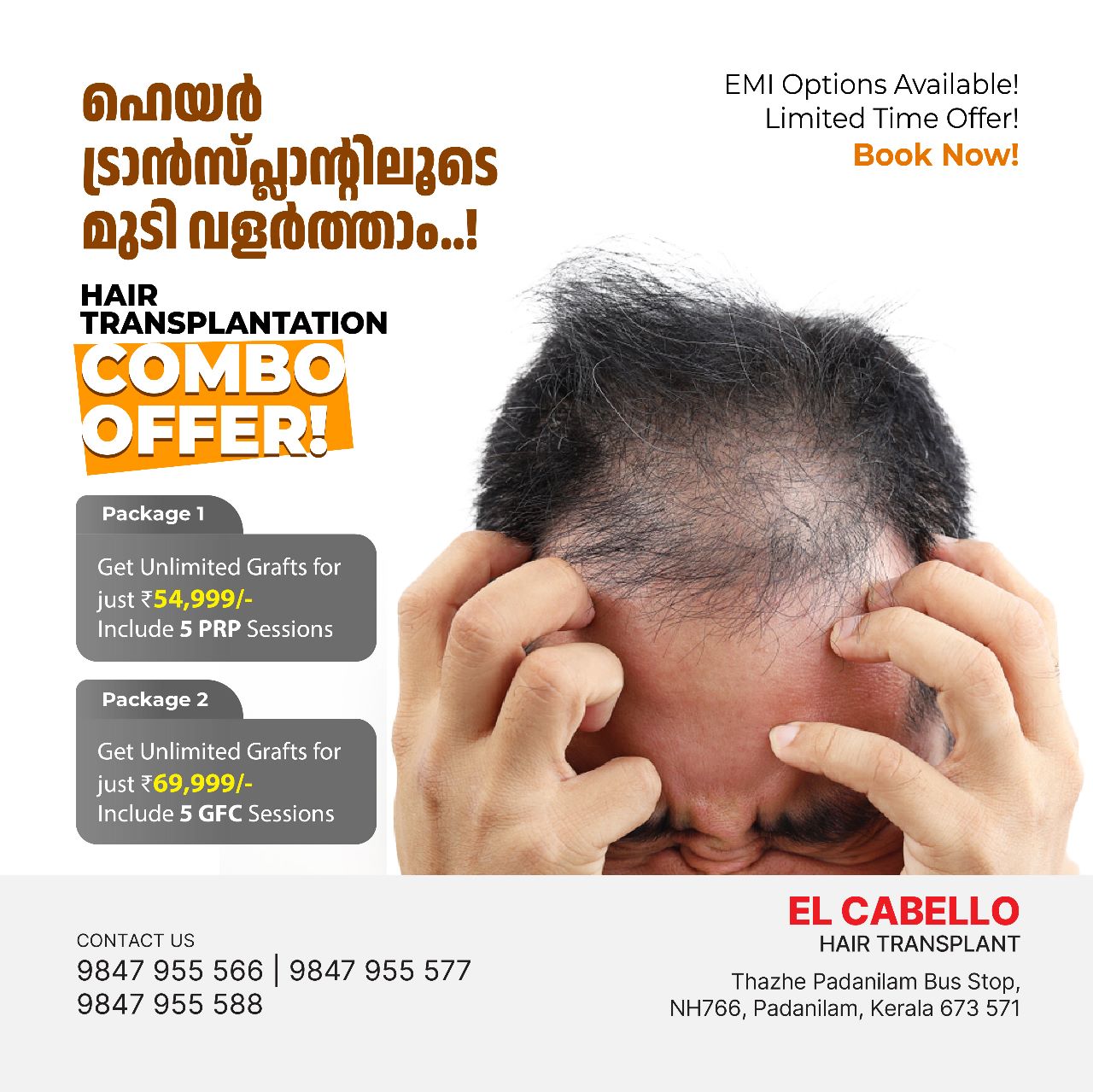 World class Micro FUE Hair Transplant clinic in Calicut, No pain, no scars. 100% guaranteed results in 8 months. Doctors with 4+ years of experience and 3000+ happy customers.